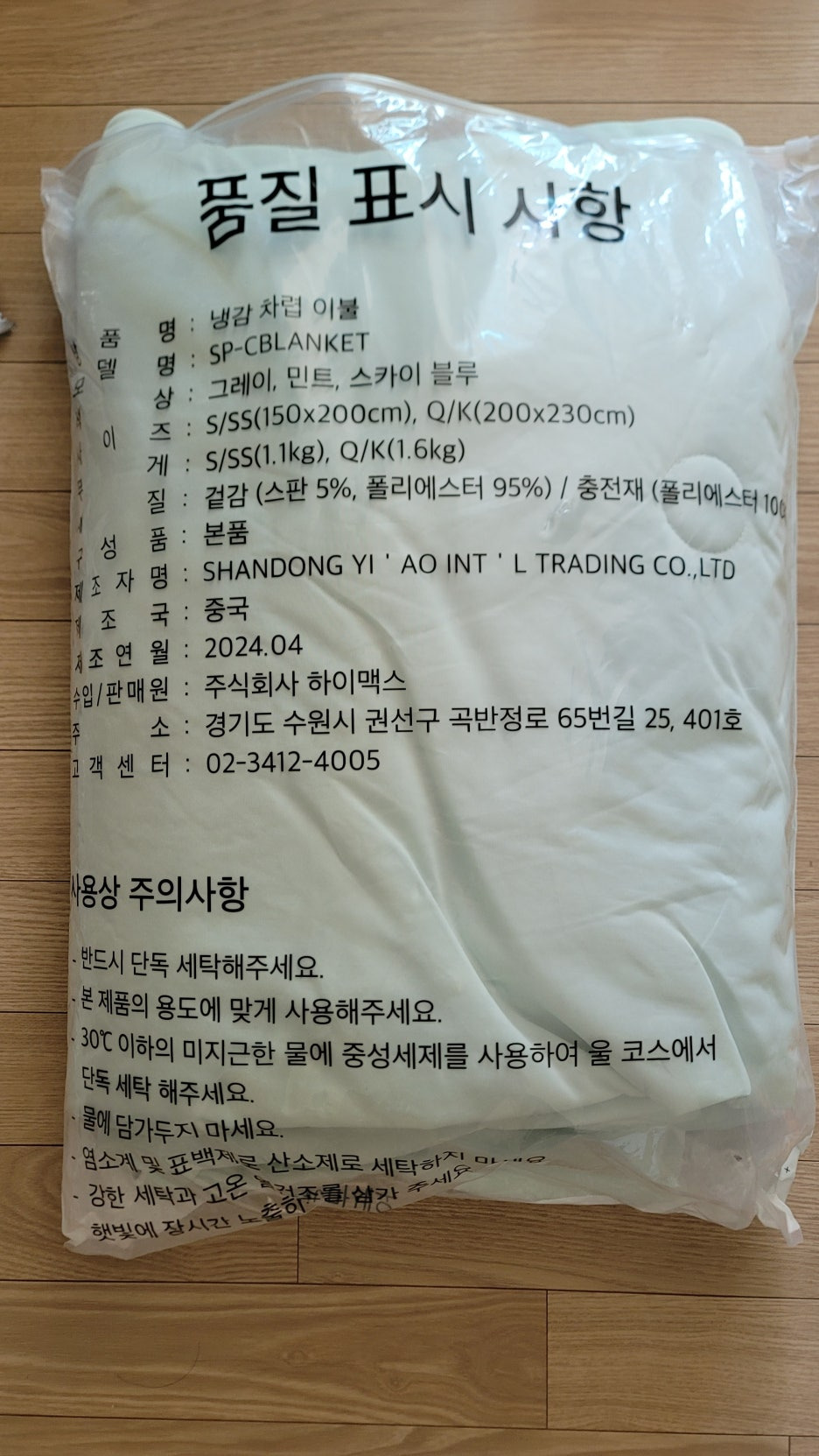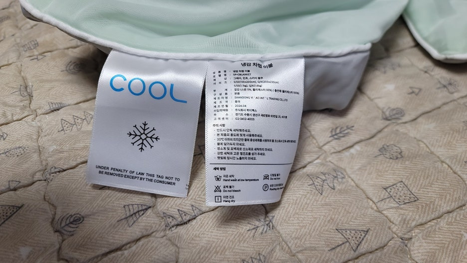 포장을 뜯고 나오는 표시사항엔 냉감차렵이불이라 나타나 있다. 제조국은 역시나..중국! ㅋㅋ
