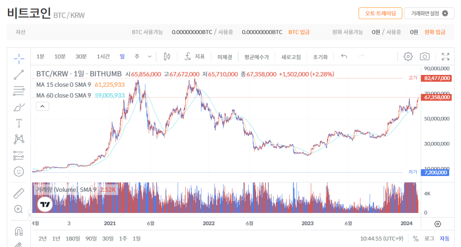 현재 빗썸에서는 1BTC 6700만원에 거래가 되고 있다.