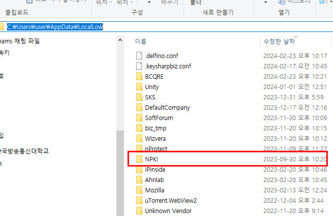 이동 후 NPKI 폴더를 복사해 공동인증서를 사용할 PC에 같은 경로로 붙여넣어주면 된다.