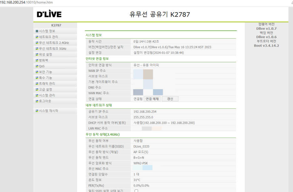 인터넷이 잘 안되길래 관리자 페이지에 접속해서 어떻게 설정하는지 확인했다. 글들이 대부분 옛날거다보니 최신화 차원에서 한번 정리 했으니 참고!!