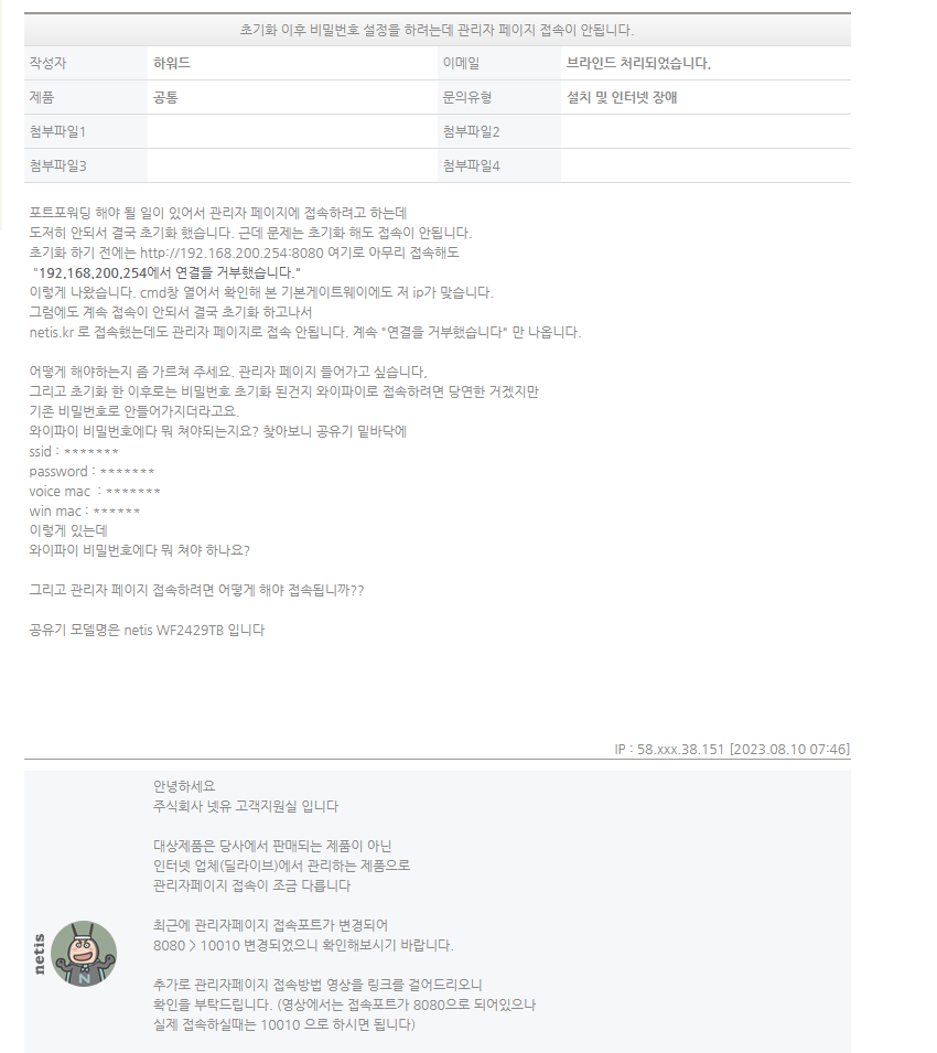 딜라이브(구 경기케이블)은 네티스 공유기를 사용한다. 엣지, 크롬등을 켜 웹페이지를 열고 192.168.200.254:10010 을 입력한다. 옛날 포트번호는 8080이었나 본데 지금은 10010을 입력해야 연결 된다. 아래는 찾은 내용의 스크린샷 첨부