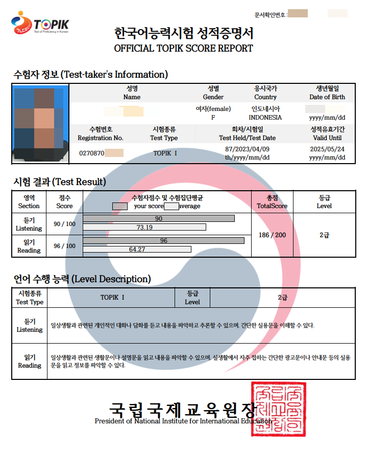 PS. 2급 이상부터는 토픽2에서 점수 획득 수준에 따라 3급~6급 까지 구분되는데 토픽2 부터의 난이도가 상당히 높다. 실제 4급 이상부터는 외국인이 리스닝 스피킹 뿐만 아니라 리딩 라이팅도 한국 생활에서 의사소통을 포함 행정처리나 사무처리가 혼자서 가능할 수 있고 6급 최상위 권은 거의 한국인이라고 봐도 무방한 수준이 됨